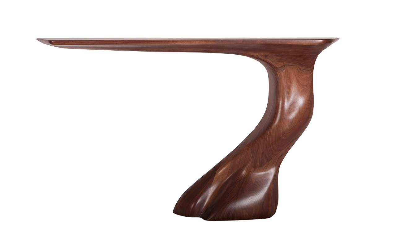 The Frolic Console Table by Amorph captures fluid motion in a sculptural form. Handcrafted in Los Angeles from solid walnut, its sweeping base and refined surface express balance, energy, and artistry—transforming functional furniture into contemporary sculpture.