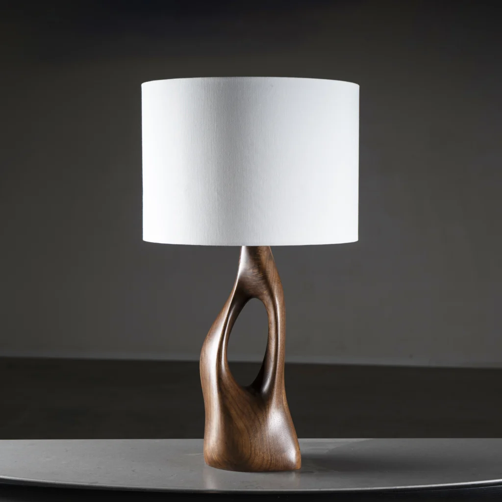 The Helix Table Lamp by Amorph Studio transforms light into sculpture. Defined by its fluid spiral form, it captures the harmony between movement and structure. Handcrafted from solid wood and paired with a minimalist shade, Helix brings warmth, rhythm, and refinement to any interior. Each lamp is made to order in Los Angeles and customizable in finish and proportion.