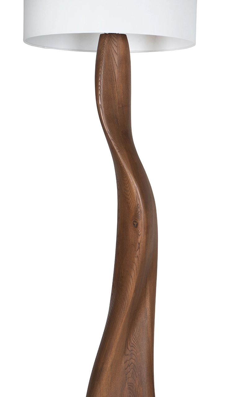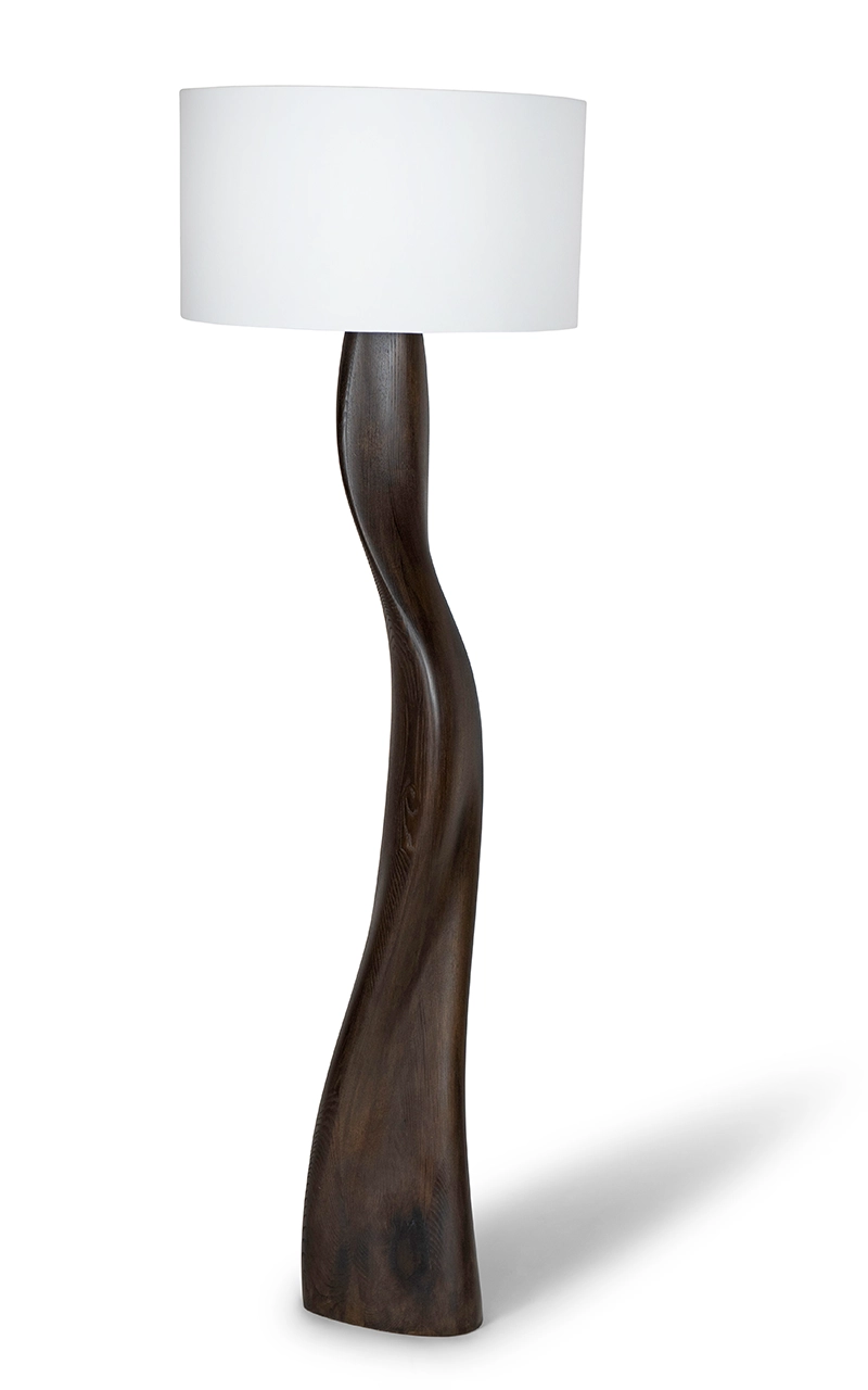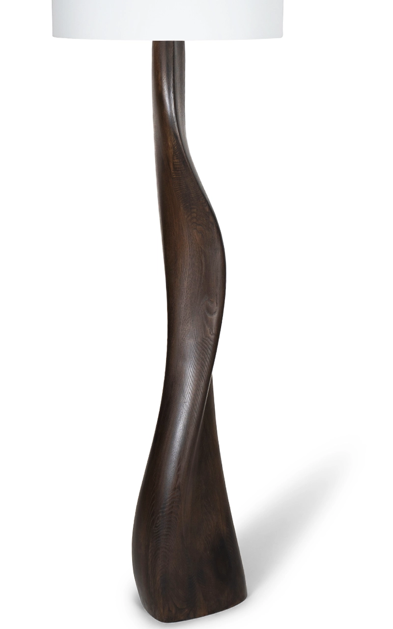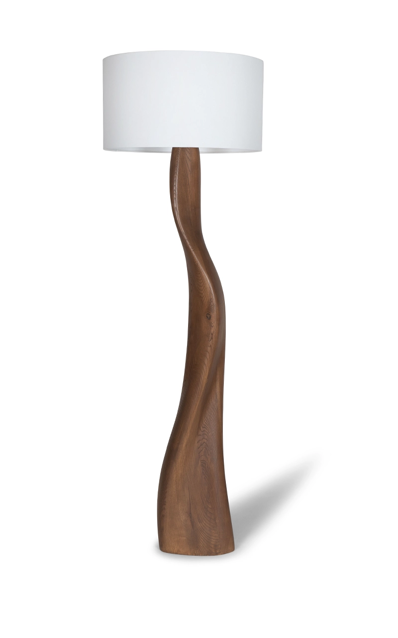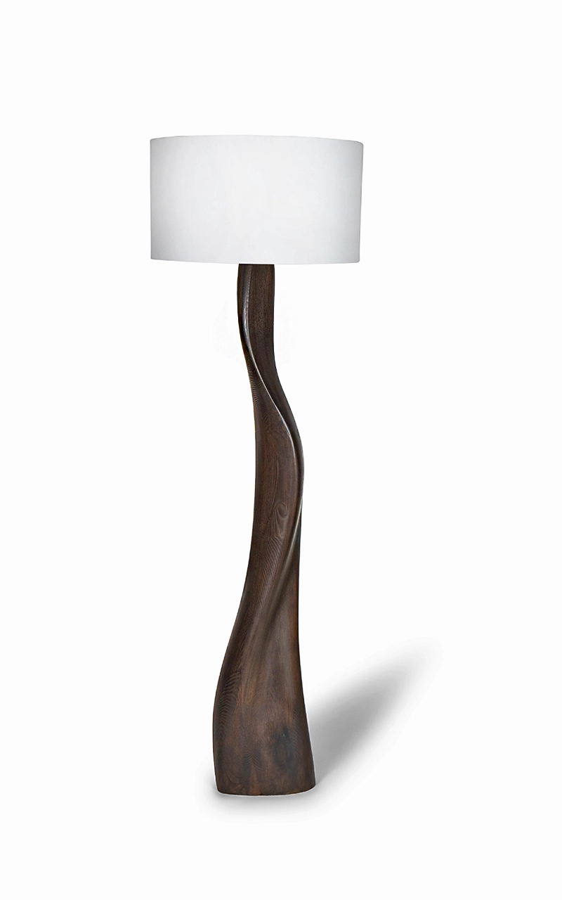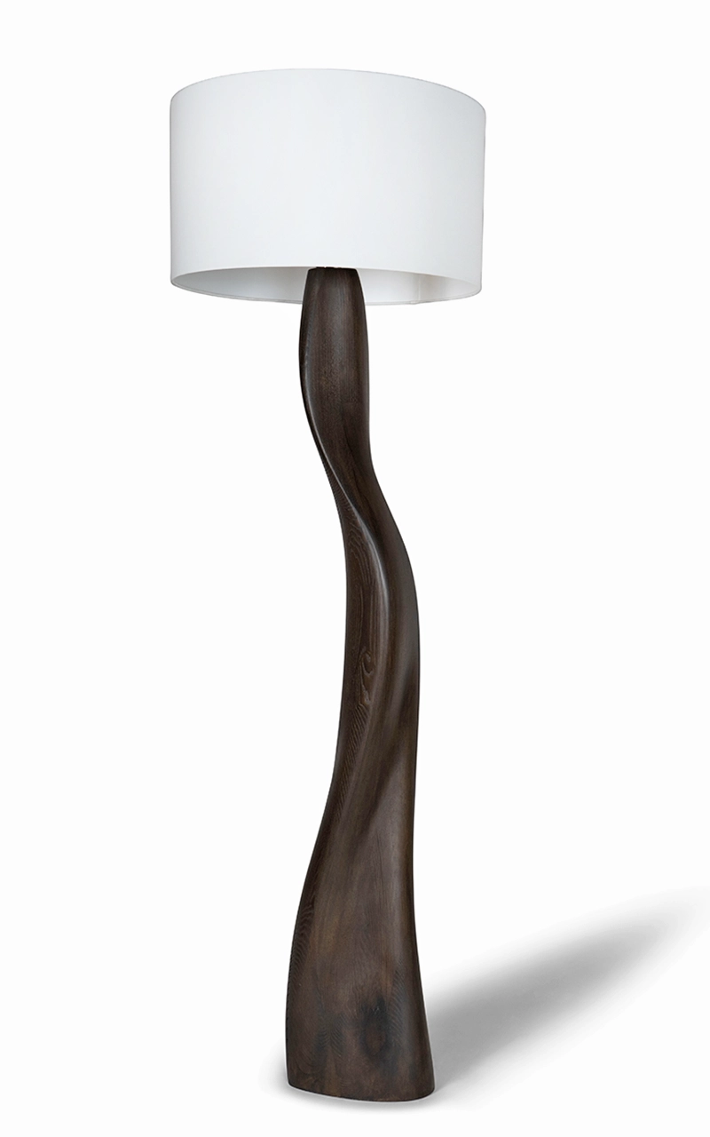 The Roman Floor Lamp by Amorph turns lighting into sculpture. Its tall, fluid form rises with natural grace, evoking quiet movement and organic balance. The walnut base twists upward in one continuous motion, showing Amorph’s mastery of shaping wood into living form.