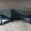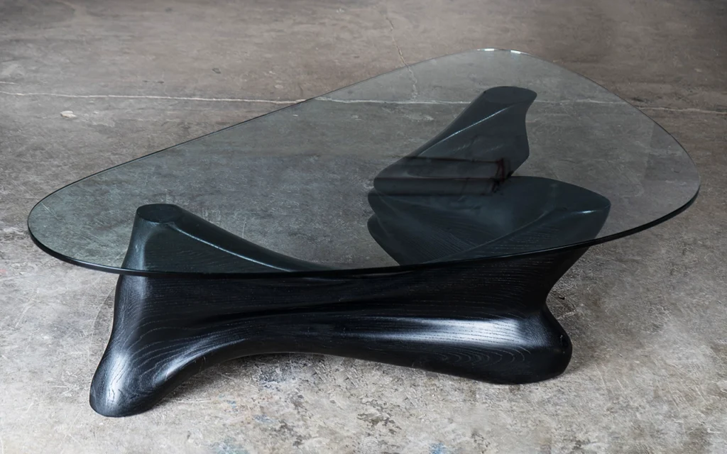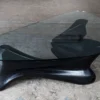 The interplay of the dark finish and glass creates visual balance—anchored yet weightless, bold yet calming. Every surface is hand-shaped and polished, reflecting a dedication to detail that transforms the table into a work of functional art.