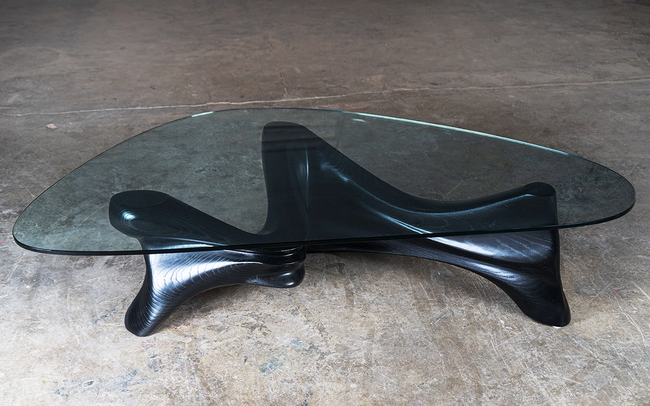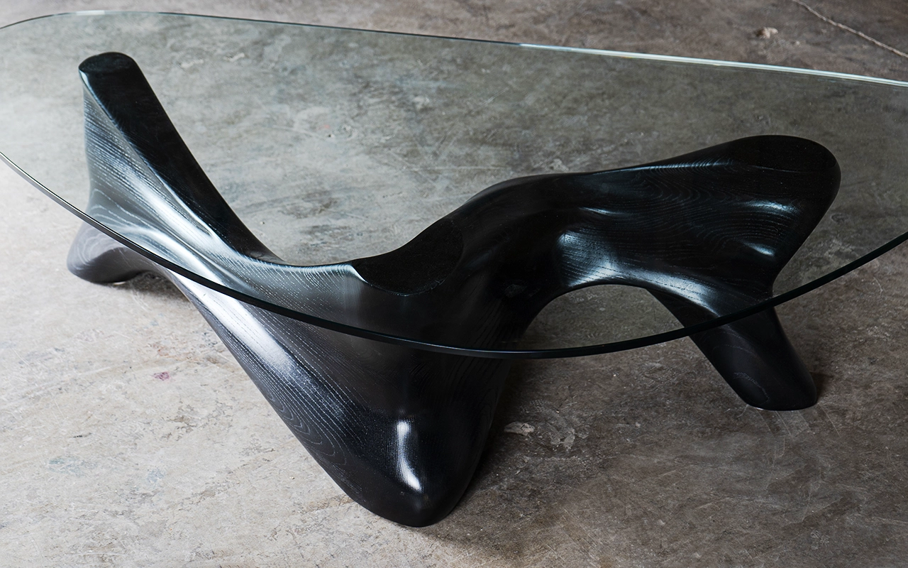 The Zen Coffee Table redefines modern elegance through contrast and form. With its sculpted ebony base and floating glass top, it captures the dialogue between strength and transparency. Each curve of the solid wood base flows seamlessly, revealing the organic geometry that defines Amorph’s design language.